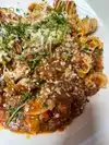 I was impressed with every dish we ordered — the lightly battered calamari served in a chinese to-go carton with noodles, the gem salad, the pasta bolognese, baked and raw oysters, halibut cheeks, seafood stew, crusty bread with pesto-like butter, steamed clams, olives.... The ingredients and flavors were delicious and had an unusual twist. The small plates are satisfying and able to be shared. The atmosphere is open with wood accents and 2 levels of seating. Reservations, especially for 5+, are recommended. Busy vibe nice for special celebrations, date night or friends, however, may make it difficult to hear or larger parties. There is a separate room available upstairs that would help. I will definitely look forward to returning!