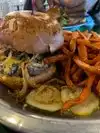 I had the burger with goat cheese, I believe it is called the goat burger. It was so good. They have excellent fries and a real assortment of beers. The service was excellent. I highly recommend this place.
