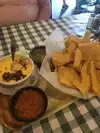 Good burgers and cheese fries. Sat outside on the patio for good scenery- I had the Nanny Goat with an impossible patty. The onion rings were so so. We would come back again.