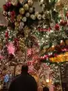 Ceiling so crammed with Christmas tree decor that each object becomes indiscernible. I had expected this to be a beautiful gracious restaurant. Instead, claustrophobic: low dense ceiling and rickety wooden booths and tables jammed together in small space to seat as many as possible. And just too damn expensive for generic German items. Filled with underdressed suburban young people. Not a place NYers go to or that anyone need experience twice.