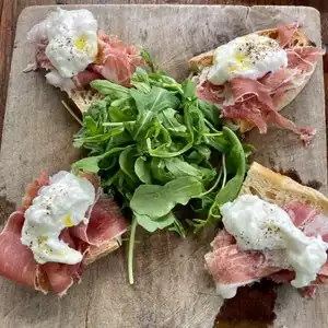 Simple fantastic food this is one of the best meals I’ve had in a long time. We stopped for lunch I had the prosciutto pizza and tiramisu dessert. My wife had the mushroom ravioli and same dessert. It was all fresh ingredients cooked on the spot and was bloody lovely.