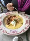 Really enjoyed this sweet cafe. The atmosphere was very French and the food was unusual and delicious. A little pricey but not overmuch. The only issue I had was with the server. Unpleasant for the most part from the time she unkindly shewed us out from an open door. (We unknowingly entered a few minutes before the opening.)