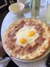 Off the general tourist beaten track. Great breakfast. We were a table of 4 and shared a breakfast and a salmon pizza. Both were great and more than enough, with unlimited coffee, to start the day.