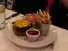 We dined here a few weeks ago and it's a lovely restaurant with a really cute 1920's feel to it, a little like The Ivy in London. We had pre-booked our table which I think would be a good idea for here as it was busy when we arrived. The waiter sat and served us straight away which I felt quite rushed. We both had the steak but it wasn't to the standard I was expecting given the price of the menu, both were full of fat and very tough to chew. Nice restaurant but they do need to review what steaks they are serving. I've had better at a beefeater in the UK.