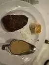 Nice steakhouse interior w/ both couple and large group dining. Selected here as < one block from my hotel, the Drake, and the temp was in the teens while Chicago was living up to its nickname. Good martini, good service. My server mysteriously disappeared mid meal for the remainder of the evening, and while this wasn't explained to me, two others provided more than adequate cover. I was less impressed w/ their food. I ordered a special, the "drop steak," which was explained to be the center cut of a ribeye. I ordered this medium rare, but the steak was so thin each bite was charred and what wasn't burned was chewy. In other words, the cut was just too thin. The mashed included with the special was barely warm, not enough to even melt the herbed butter I'd ordered with the steak. General disappointment considering all the world class beef in this city.