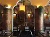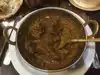 The interior is inviting and well decorated by wall wood panels carved with Indian motifs and paintings. The place sits about 50/60 people. While the manager appeared to be a little grumpy, the two waiters and the manager's wife (?) were extremely kind. I ordered garlic naan, lamb vindaloo and one side of achar. I thought the vindaloo would come with rice, but instead I had to order it separately. I paid $29 in total, which included a 15% gratuity. The naan was large, fresh and good. In my view, the pieces of lamb and potatoes in the vindaloo were too big and needed to by cut for consumption. Personally I prefer smaller pieces. I had asked for "medium" hot. This "medium" vindaloo was not at all hot, so I suggest you order full hot if you like your food spicy. The achar was slightly different from what I am used to. This was probably due to the mix of vegetables in the pickle. I ate it, but I did not find it special. All foods and drinks are served in heavy pewter dishes. I did not mind it as it kept my water very cold at all times. A knife was not provided on the table (not sure why, but it surprised me), so I had to ask for one to cut the 2"x2" morsels of lamb. All in all, this seemed to be an average Indian restaurant, with average food and average service. I was definitely not disappointed, but I was not impressed by anything in particular either.