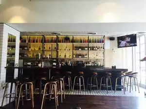 As we entered the sun reached far into the local with it's fresh hip interior. We went for a drink and something small to eat. We were seated at a table just in front of the bar and had a great view to the street, felt like we were sitting on a veranda. Good drinks and epic food! We had fish tacos and a plate of hummus shrooms and asparagus - very fresh!