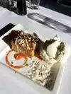 Sat at the bar, as we needed reservations for inside. The atmosphere was fine, but the bartenders were super busy with the staff that we didn’t feel like we were noticed. The sampler for 2 is available for 3 and we enjoyed that. The sushi was Ok - but priced high for what we got. Note to the staff: if you complain to your bartender about the staff - know that others can hear you...