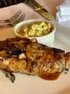 We had purchased a deal where we got an appetizer to share so we got the Lobster Bisque, it was one of the best I have ever had with big chucks of lobster in it, two entrees we got the macadamia nut mahi mahi and exchanged the potatoes for the black coconut rice which was delicious, and the steak which was not as good as expected, it came with mac and cheese but did not have a lot of flavor, then two deserts we had the pineapple upside down cake and the molten chocolate lava cake, they were both very good. Overall a great meal, should have chosen the filet over the the more expensive steak.
