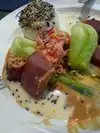 Blackened island Ahi. Delicious. Bravely spicy with wasabi and crab sauce. Really good fish. Nice sides. Wine menu small but meets my taste.