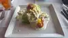 I really enjoyed the pre fixe meal with salmon so that I could try a variety of food. The sauce that came with the salmon was very flavorful and as much as I tried to avoid the rice, I couldn't help but to mix the rice with the sauce to enjoy it all. The mango dessert was the best part of the meal. Generous portion and decadent. Overall, the meal was pricey m, especially for lunch, but tasty. Only negative is that I was the first diner in the restaurant and it was so hot inside. I was sweating until the dessert arrived and I could feel relief of the air conditioning.