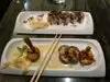 My friend on the east coast told me that even though this was a chain restaurant I should check it out. So we did and my vegetarian dish was amazingly tasty! Tofu with rice and veggies. My husband had chicken rolls and loved them.