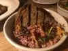 The outdoor table we reserved was ready for us. The four of us chose different entrees. I think my hamburger was the best. The cod was excellent and served with a flavorful lentil -dal- bed. Order the olives, they are so good. A steak offering and the large portion of mussels added to a memorable dinner for each of us. Our server kept dinner moving at a comfortable pace and deserves credit for making the entire dining experience worthy of a excellent review.
