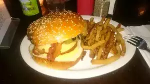 Hands down-best burger in the city. Great selection of beer. Most entrees comes with french fries and mayo mixed with vinegar to dip them in.