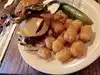 Caeser salad with polenta croutons and mussles in saffron... Drool worthy.