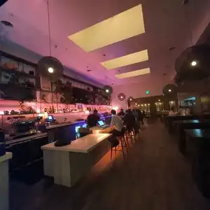 I had an Old Fashioned and asked for some bar snacks since I saw a selection behind the counter, the waitress suggested chips & guac so I said great... I waited and waited and when it finally came it looked gorgeous but tasted like all they'd done was add lime juice to mashed avacado (no other flavor happening). The chips were cool looking, but greasy and awkward. When my bill came I was charged for them (yes, I should've asked, but it was still irritating). My Old Fashioned was really good, but came in a plastic glass (tacky). I liked their bar in the lobby a whole lot better (just as cool, same great drinks but in real glass, better service & free bar snacks)!