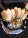 Wow! We had a fantastic dinner here last night! They have a beautiful patio space - definitely sit outside if you can. We ordered a number of dishes to share, as my daughter has not experienced the joy that is tapas! The pork belly is an absolute winner! Rich and delicious, fatty and meaty and YUM. The brie was a very nice mix of the sweet and savory - DD snapped up the roasted garlic with delight! Corn and radish tostadas were great - especially the corn. Pollo Hermana - very very good! A nice mix of flavors. The duck was my absolute favorite! Crispy skin, perfect seasoning, hearty and filling. Dessert time! Creme brûlée was a little looser than we'd like, but the berries on top were a great addition. Banana split was delicious! An unusual combination with blueberries. The bread pudding totally blew us away! Not too sweet, a delicious burnt-sugar flavor. A delightful end to a great meal.