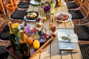 We came at 1130am. I saw very good looking breakfast being served but I made the mistake of ordering lunch with my son. He ordered the libetse roll. As soon as we touched it the bun fell apart to reveal a measly amount of lobster. I ordered the burger and it was a greasy and soggy mess. Instead of serving it open faced as to not make the lettuce and tomato soggy, the kitchen closed it. This you should never do. Any decent chef knows this. Anyhow. Get the breakfast and avoid the lunch menu. At least what we ate. Service was excellent however.
