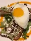 This review covers the Rooftop part of this restaurant. If you are younger, like loud places, like a party vibe, and eating bar type food, this is the place for you. If none of these apply then I would try the restaurant on the main level. We went on a Tuesday at 7 and the placed was packed. To me this is not the place to go to to have great food and service, although both were ok (not great), it’s a place to enjoy the vibrant night life of the city.