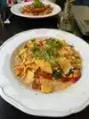 We had a nice dinner here - we chose 2 delicious pastas. The service was a bit rushed - if we hadn't held off on ordering our main courses we would have been out of there in 45 minutes! Even though I specifically asked for no straws in our water (straws are terrible for the environment!), we got them anyway. But all in all, a good restaurant choice. Their decor is very creative - lots of headgear for Pastafarians!