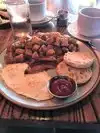 The atmosphere is great. Wonderful service. We had the veggie and meat skillets with side of biscuit and gravy. The food was fast and tasted amazing. It was a gorgeous day in San Diego to eat this inside/out restaurant.