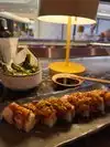 Great selection of sake. Fresh Tasty sushi,traditional and fusion. Fast service and great atmosphere. Easy to find with the unique architectural style.