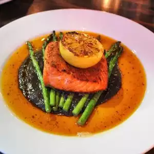 Fantastic local restaurant, cool vibe, nice menu with tasty food. We shared pasta with mushroom and cream, added sausage it was really great, soft and home made noodles. Pork chop was excellent. Salmon was just fair, sorry, it's an odd dish, but certainly a nice attempt. Really nice atmosphere, great wine and beer. This is a special place with a local feel. In hip neighborhood of Freemont.
