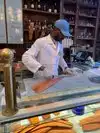 While waiting for our table we saw this incredible lox slicer at work. He was also giving with his knowledge. When we ordered the bagel and lox it tasted even better because of the thinnest. He is a gem!