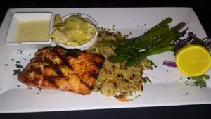 Been to this restaurant three times and it does not disappiont. Nice atmosphere. It's a little dark inside, but the vibe is good. Try the apple martini, it has caramel in it-prrtty good. Service is good. The shrimp and grits appetizers are delicious. I've also had the chicken with Yukon potatoes and veggies. Good flavor. The salmon is good. I've also had the salmon bit for lunch. Delicious. I definitely would recommend checking them out. I'm sure visit again sometime soon.