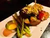 We were just visiting in Atlanta for 2 days. We were in another local place and was recommended to go here. They were able to seat us very quickly without a reservation (Friday evening). Our server, Tim was pleasant and had very friendly and quick service. When the food came, it looked so delicious. Once we started eating, from the very first bit, we knew we were eating at a special place. The Goat Cheese stuffed Chicken was absolutely marvelous. I can't say enough about it. It had some potatoes and spinach. Then the Rainbow Trout was just as good. It has rice pilaf and kale. I did substitute the kale for Asparagus, and that was probably a very good decision as the asparagus was cooked to perfection!