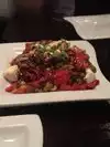 This perimeter restaurant has a dark modern interior with booths and tables for seating plus a spacious bar. The service was attentive and food and drinks were served quickly. The portions were immense. We had appetizers and salads (one each) and found that there was almost too much food. The quality was very good and the presentation of the dishes artful. There were some odd quirks though with a slightly sweet dressing on a Greek salad and a gin blueberry cocktail that was relatively insipid. There are some well chosen wines by the glass and bottle but pretty standard fare in terms of the overall selection.