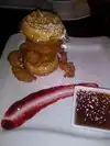 It had 4 stars and it was nearby, so I gave it a try. Very nice presentation, cool enough to eat on the patio. I was drawn there because I like to try new things and they offered small plates. I tried the beef ribs with polenta squares first. The beef was tender, the sauce tasted like Pioneer brown gravy mix and not enough polenta. Then the crab cakes, they were quarter sized but tasty enough. Lastly the fried green tomatoes with Pomodoro sauce. My fault entirely, I didn't know Pomodoro was spicy tomato sauce. Nonetheless it was nasty. Kitchen service was slow, it took an hour and a half to get these 3 small plates. I wouldn't go back.