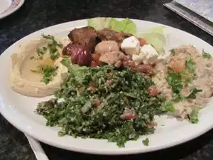 We enjoyed lunch here today. The assorted appetizer plate included creamy hummus, tasty baba ganoush, marinated mushrooms and carrots,a falafel, a warm grape leave and good tabulhli. We shared a koftka pita that was delicious. The service was efficient and pleasant.