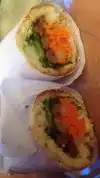 Bring cash. Wait time is at least 15mins. Vegetarian options available. Big serving. Place is small and crowded. Food is yummy and service is ok. Not a have to hang out and chitchat. You must eat, leave and pay. Recommended if you just want to eat fast and go about your day.