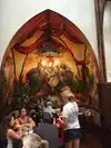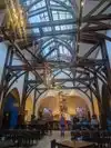 According to their website "Saint Arnold Brewing Company, located in Houston, is Texas' Oldest Craft Brewery" and goes on to claim "our beers have soul". I'm pretty sure there's a joke in there somewhere. But, if ever there was a patron saint of brewers, it makes good sense to name a beer, or even an entire brewery, in his honour. To be exact, according to legend St Arnold was originally the patron saint of hop-pickers, but lets not split hairs. Having visited a number of other such breweries around Houston, this one was new to me. It was surprisingly easy to find, quite visible from the highway, and clearly geared towards attracting visitors. There is ample parking - with several parking lots around the visitor areas, enough to convince you that this place is so popular that it can get overwhelmed at peak times. It is possible that some visitors come just for the brewery tour, but somehow I suspect that most of them come primarily for the beer. Luckily, it was a hot and sunny day when I visited. Even on a Sunday afternoon, it was pretty lively with drinkers and diners. We stayed for a couple of beers in the covered beer garden (see pictures) with an ornate fountain as its centrepiece which somewhat resembles an enormous overflowing champagne glass. There are also some stunning views of the Houston skyline on the horizon. There is waiter service for food in the beer garden, and there are numerous sports screens, making it the perfect venue to sit and ponder and just hang out. This place is very family-friendly, with lots of young children and dogs, and even lawn games in progress outside. The bar in the beer garden does appear rather small, though the choice is extensive with 24 beers and ciders on tap, but there is also a restaurant with a bigger bar and a gift shop just inside. We didn't get an opportunity to sample the food, though what I saw looked good. I had a good look around the restaurant and loved the way it was constructed to resemble a converted monastery or church with its wooden beams and little alcoves with colourful and decorative murals with quasi-religious themes (see pictures). Definitely worth a return visit, and next time I'll be sampling the food as well as the beer.