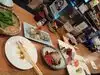 Dined here last night with a group of friends. We started with a pitcher of Sapporo Beer and Black Edamame, Steamed Pork Dumplings, and Deep Fried Eggplant. For main courses we shared Sautéed Shrimp, Japanese Style BBQ Chicken and Pork Belly, Garlic Skewers, Pan Fried Noodle Bowl, Asparagus & Enoki Mushrooms wrapped with Bacon paired with Sake. The servers were friendly, prompt, and courteous, great atmosphere - very lively. It was a magical evening, highly recommended!