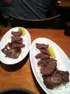 The first thing that greeted us in this basement eatery was the smell of bleach - but that may be a good sign as it shows the place is cleaned often. The service was fast, and the place filled up by 6 pm. We started with the salmon sashimi, which was fresh, followed by pork belly, beef and grilled chicken sticks. The meat was tasty, though a little on the tough side, especially the pork belly. The gyoza was excellent, as was the fried oysters and the pork and kimchee fried rice. We ended with fried pancakes and green tea ice cream, which was delicious. There are a lot of Asians, including Japanese, who frequent this eatery, so the food standards are high and authentic.