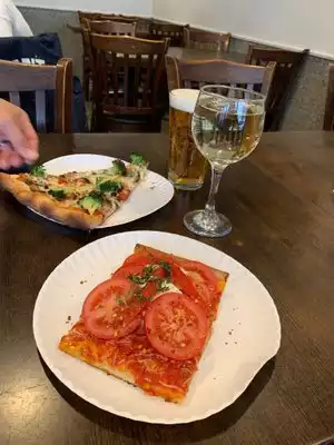 Love this place, fresh, delicious pizza- great variety. Got the capresse pizza, veggie pizza & garlic knots! They have wine & beer.