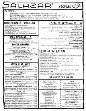 Salazar was hopping when we were there (Friday evening), but the drinks were good -- though maybe a tad pricey. Parking was a bit of a challenge. The atmosphere was fun. It's a minimalist place, almost entirely outside. Nothing fancy and the menu is short. But the tacos were exceptional and the beet side dish was excellently prepared. Prices were very reasonable. We'd go there again.