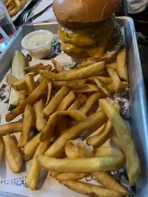 Met up with friends there for drinks and food. The waitress was slow. Didn’t know what type of bun was on the burger. Didn’t give me utensils and napkins. Like why would I have to ask for that?
