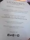 We thoroughly enjoyed our evening at Salvatore's! The service was very attentive and knowledgable as well as engaging. The meal was delightful from start to finish and the wine selection is good, a bit pricey though. The decor is very pretty yet comfortable. I highly recommend a visit to Salvatore's!