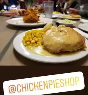 Visiting from the NC. Saw this place on you tube before arriving. My husband loves chicken pot pie. We ordered the chicken pot pie meal which came with a chicken pot pie corn which was bland, okay tasting mash potatoes and okay tasting gravy. The chicken pot pie was pretty good and the peach cobbler was also good. Overall I would visit again.