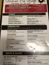 I had the $8.99 pie dinner. It included a chicken-turkey-vegetables-gravy pie, mashed potatoes with gravy, a roll, and a coleslaw side. The price includes a slice of on-site baked pie for dessert. All were flavorful and served within a few minutes of ordering. I've been here several times and the food is always very good and the service is always good as well. The 'chicken' decorations throughout give the place an nice ambience, but it is a place for regular folks and not fancy and certainly not expensive. Note: the dinner fills most people up without any add-ons like soup (less than $2 extra). I'll be back!