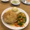 We each had the iconic chicken pie dinner after a forty year lapse. It hasn't changed at all, except it is now 9.99 instead of 3.21. You get the chicken pie, all chicken and no veggies, a scoop of mashed potato, both covered in gravy, a heap of corn, a very good warm soft trashy roll, a side of finely chopped coke slaw, and your choice of our for dessert. And you don't need any teeth to eat it! Also, service was instantaneous. The meals arrived less than two minutes after we ordered! It is not gourmet, but you won't find a better value for good tasting comfort food. By the way, there are lots of other chicken based options on the menu.
