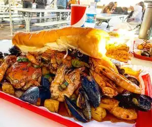 Come for the experience, can have long lines, but the food and ambiance is worth it. People are very friendly. It make take a bit to find a table, but we'll worth the wait. Must love seafood. Don't miss it.