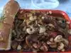 I had seen this market on the food channel so I decided I had to stop by and try their shrimp, potatoes and vegetables combo. You order the shrimp from the fish market and then take your order to be prepared by the chefs. They use seasoning that infuses into the shrimp and other delectables. It was a massive order once it was ready. One pound of medium shrimp was plenty for a group of 3 or more. I wish the seasoning could have blended in better with the seafood. It was good but could have been tastier. I do wonder if I had ordered the jumbo shrimp rather than the medium, would it have been better. I did the shrimp with the shells still on them, which means you better be prepared to have lots of napkins to wipe your fingers. I guess you could lick your fingers as it will have lots of flavor on them. The order was so big that I and my friend could not even finish it. There were many people at the market enjoying this and many other seafood entrees. I seen customers with lobster, crab legs, garlic bread, clams, shrimp and fish. You will not leave this place hungry.