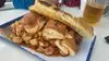 Shared a lightly battered shrimp and chips, coleslaw, and delicious sweet corn on the cob. The amazing corn once cooked, is slathered with mayonnaise and then has Parmesan cheese packed into the mayo. Cannot believe how good it is. Friendly service, outside dining, great beers on tap. Beautiful clear day to enjoy the strong sun, gentle breeze, and bustling port.