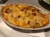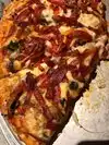 A smallest local pizzeria with some standard options and a few unique combos. A fairly classic medium crust. Delivered hot on a nice stand to your table.