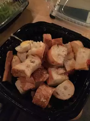 Ordered almost $100.00 worth of pizza and salads for a group at my house. When we opened it, the Panzenella salad was nothing but bread. Really 90% chunks of bread! Also Farmers salad had no dressing with it. When I called the next day [was not going back that night, I had company} I was told, too late, nothing they could do. I still had both salads but Joe, the manager told me he had no intention of doing anything. Photo of salad below.