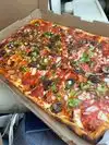 There are only a handful of places in Philly doing true tomato pie (some say it evolved in Trenton) and this place does a great version. A square pie with sweeter sauce - great toppings on their "works"!